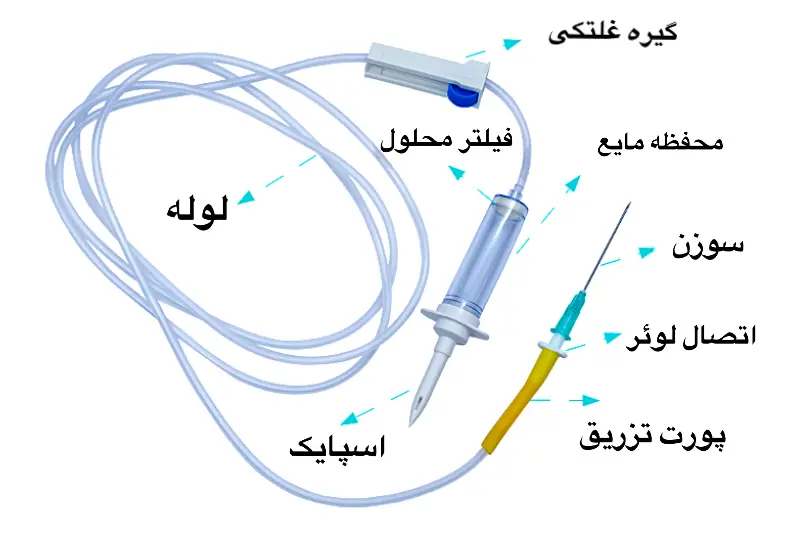 عکس زیر اجزای تشکیل دهنده ست سرم را نشان میدهد.